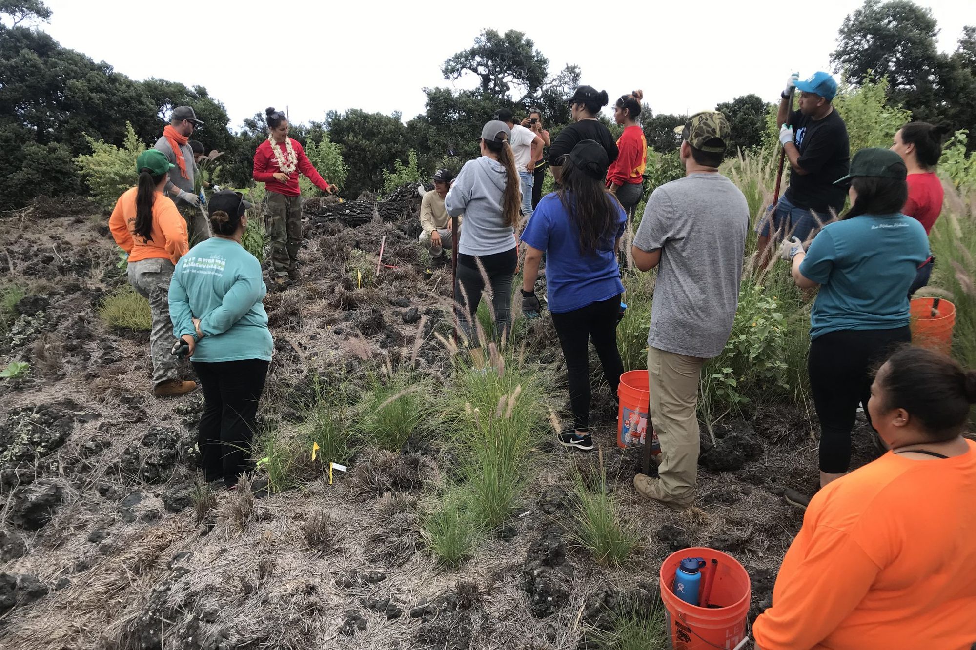 Today, we volunteered with the Department of Land and Natural Resources to help clear invasive grasses and replant native species at the dry-mesic lama forest, Kīpuka ʻOwēʻowē.